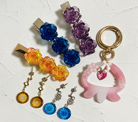 レジンで作るクラゲや薔薇、星座などのアクセサリーや雑貨を販売しています。