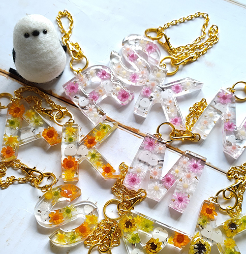 ハンドメイドイベントで人気のシマエナガのイニシャルチャームをメインにフラワー雑貨を販売します