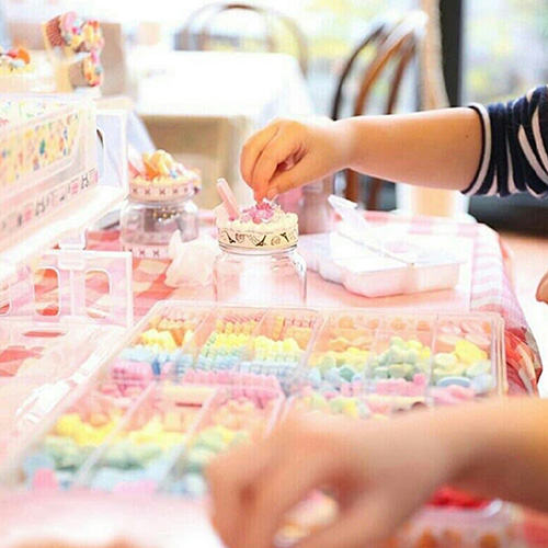 スイーツデコワークショップで使用している盛り放題パーツはひとつひとつ手作業で型詰めして乾燥させたものです