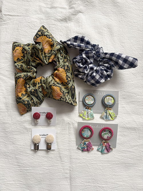 ビーズや布を使ったアクセサリーやシュシュを販売しています