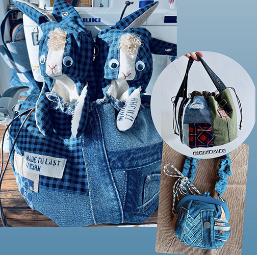 デニムリメイクのうさぽっこホルダーやバッグなど作ってます。