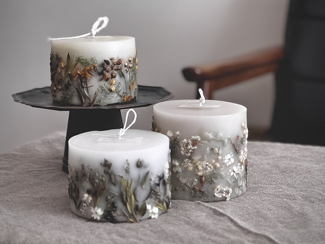暮らしに寄り添う灯りを。インテリアに調和し、灯すことで魅力が増すデザインや色使いのキャンドルを制作しています。