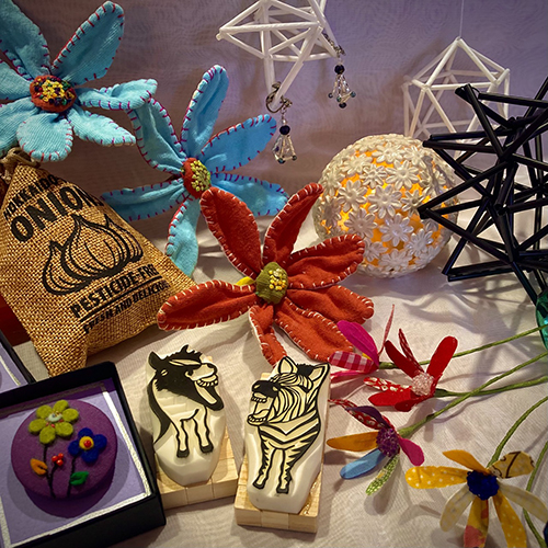 オリジナルスタンプ・カッティングシール、刺繍糸・布・羊毛フェルト・石粉粘土を使ったアクセサリー&雑貨