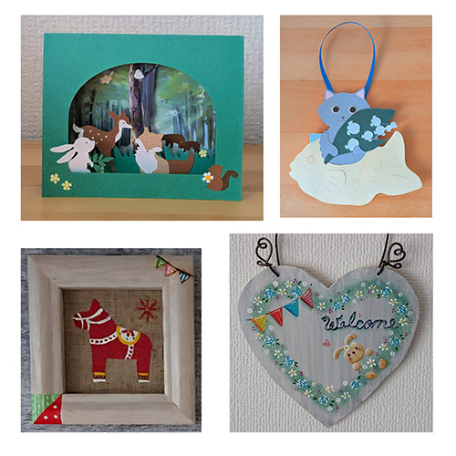 ペーパー雑貨、ペイント雑貨、アニマルモチーフ、ウッドバーニング、毛糸小物、フエルト小物