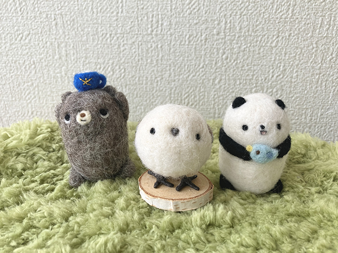 羊毛フェルトで動物の置物やキーホルダーを作っています。お気に入りがみつかりますように。