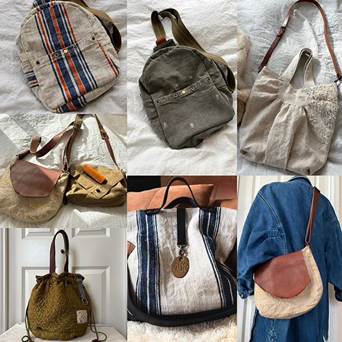 ヴィンテージ生地や軍物素材などを、革と合わせてバッグを作っています