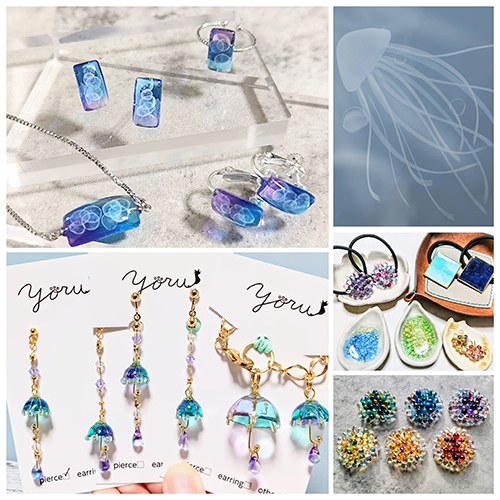 YORUのレジンやビーズのアクセサリー中心です!傘モチーフのものや、自分で染めたかすみ草を使ったアクセサリーや家族の雑貨もあります!